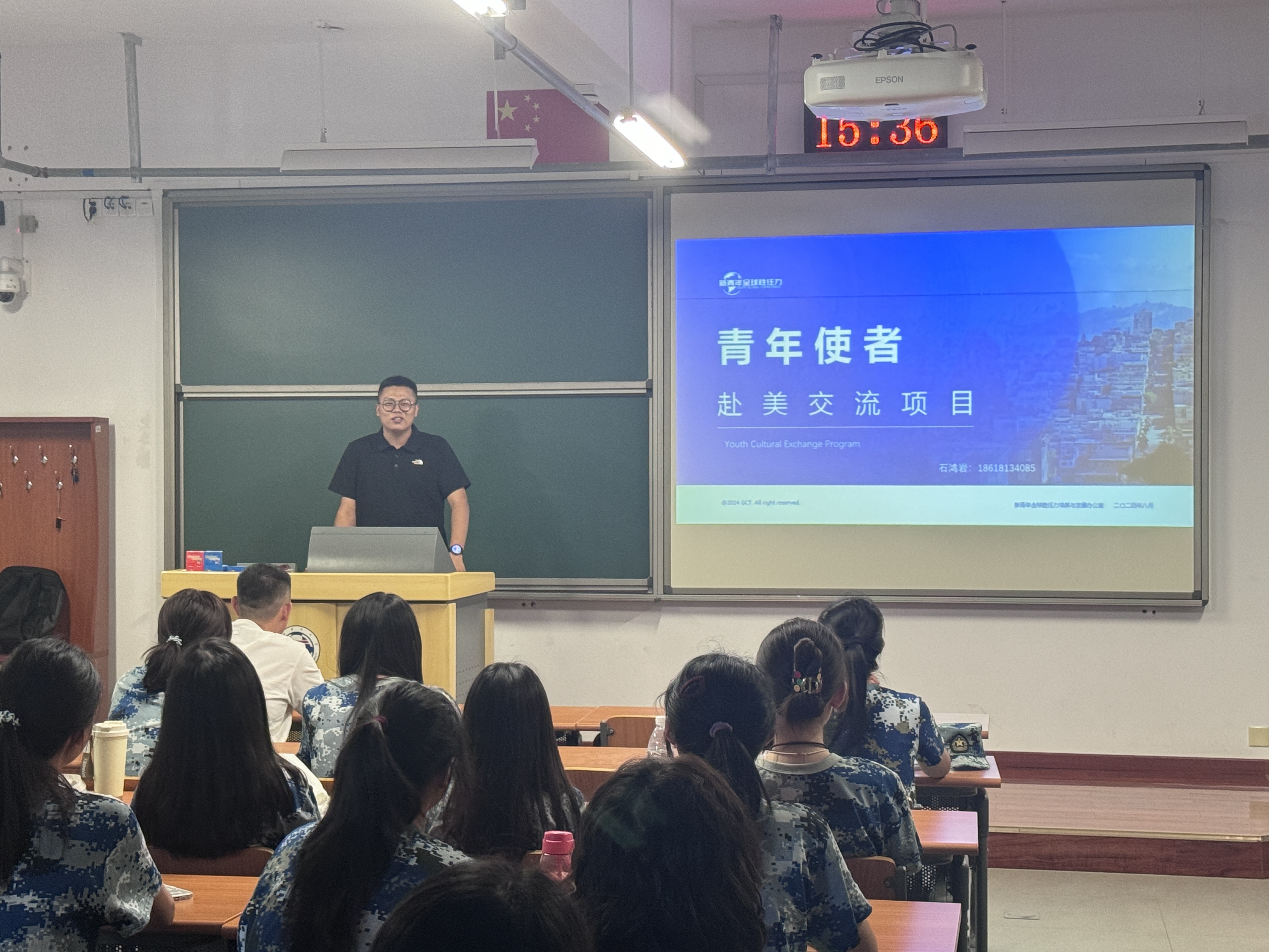 9月6日下午,英国正版365中文官网邀请石鸿岩老师面向2024级本科新生开展青年使者赴美交流项目的宣讲和交流活动。